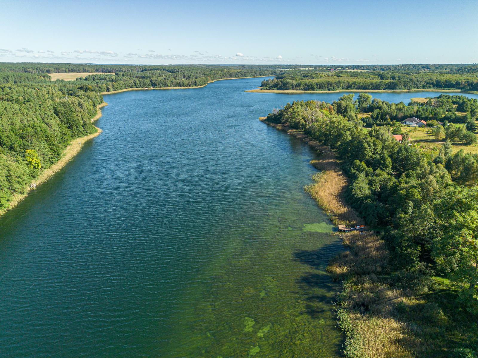 Jezioro Jelenin, położone w Pojezierzu Myśliborskim, charakteryzuje się czystą wodą i otaczającymi lasami, które jesienią nabierają wyraźnych barw. Zdjęcia z drona pokazują zarówno taflę jeziora, jak i okoliczne tereny leśne, prezentując spokojną i atrakcyjną przyrodniczo okolicę.