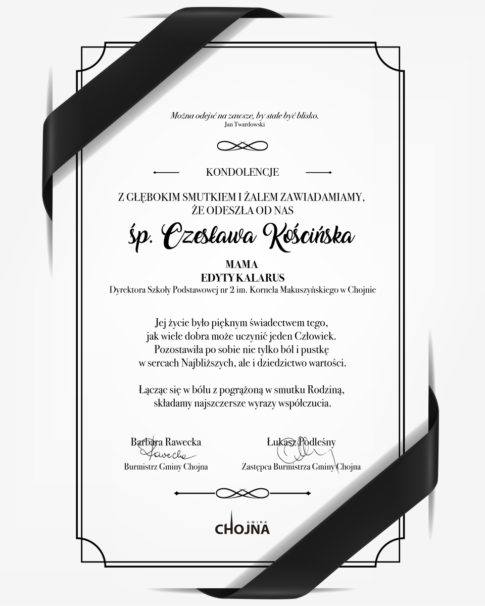 Kondolencje Burmistrzów Gminy Chojna