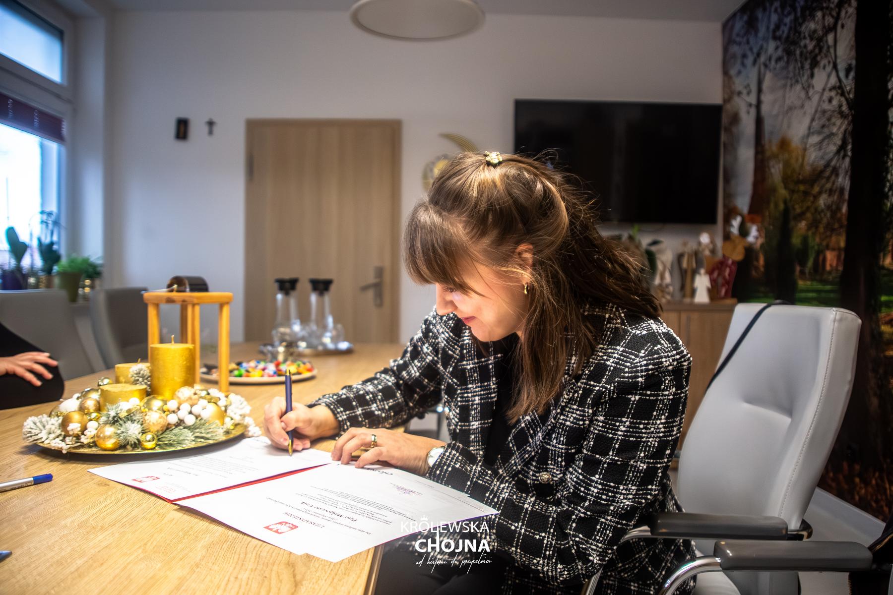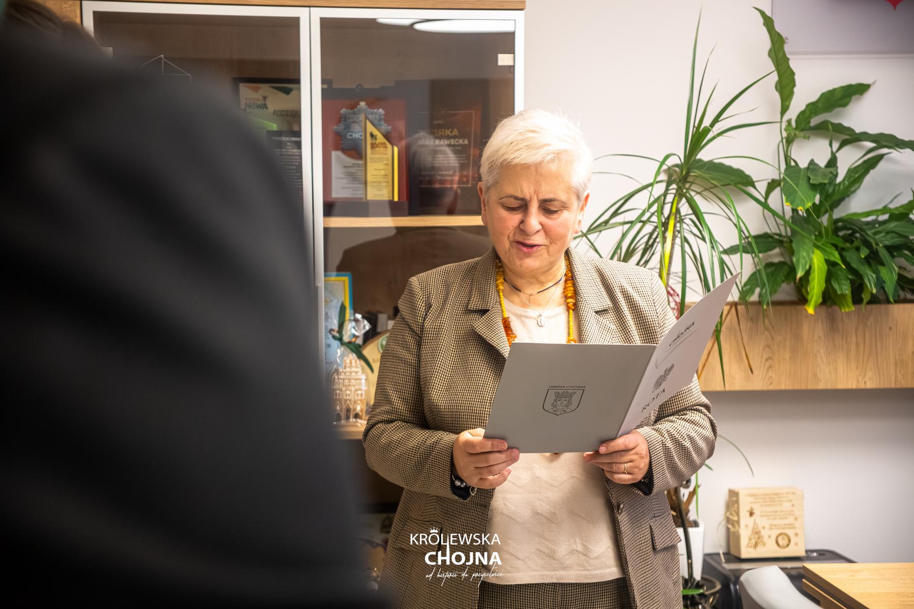 W uroczystości uczestniczyli dyrektor Szkoły Podstawowej im. Kornela Makuszyńskiego w Chojnie Edyta Kalarus oraz dyrektor Administracji Szkół i Infrastruktury Społecznej Weronika Kotlińska.