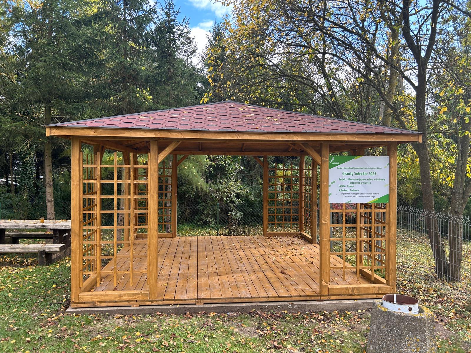 Zakończono realizację projektu "Modernizacja placu zabaw w Grabowie - bezpieczna przestrzeń". Dzięki inwestycji plac zabaw zyskał nowe, bezpieczne urządzenia oraz altanę, która stała się idealnym miejscem do spotkań i wspólnego spędzania czasu dla mieszkańców.