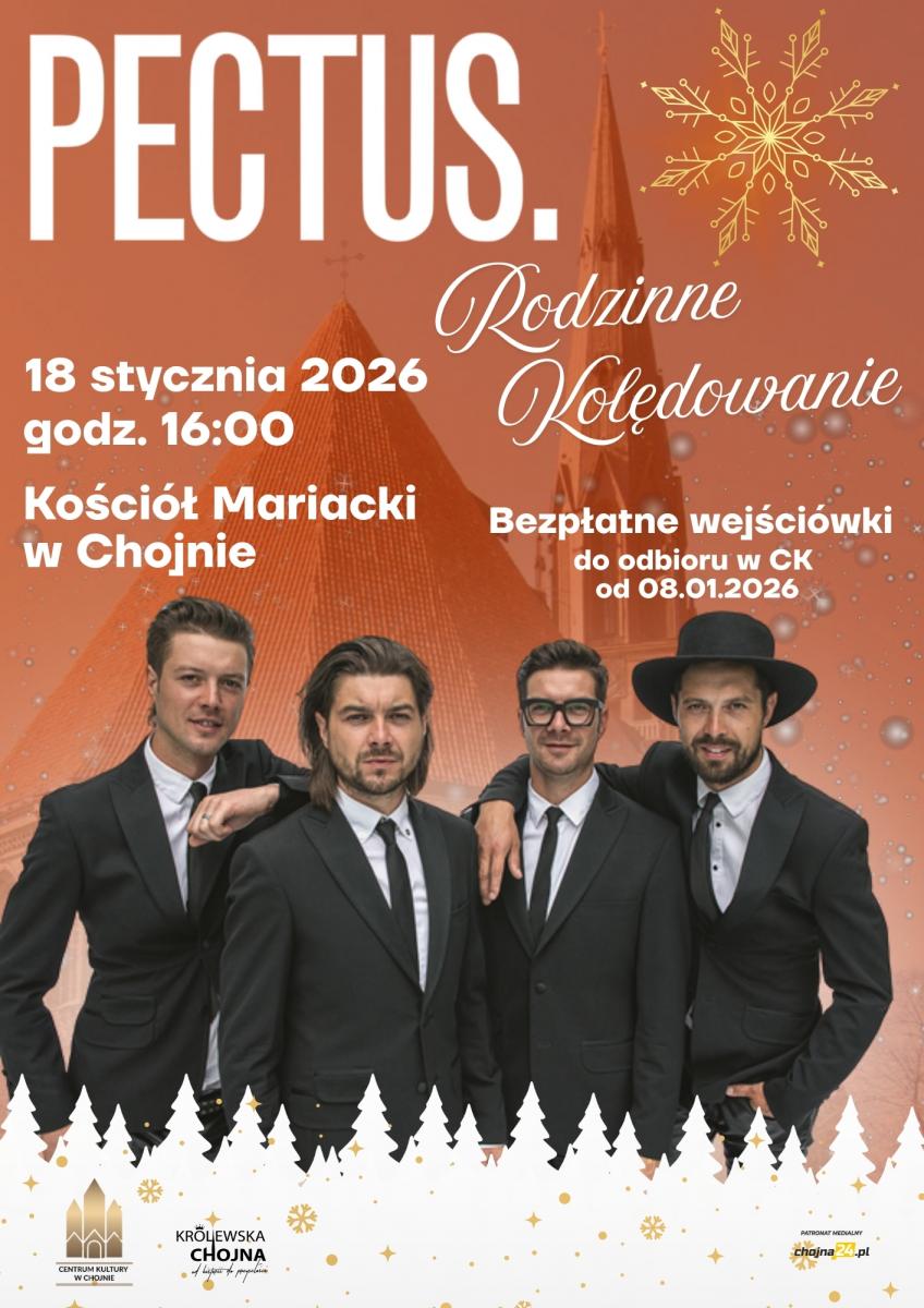Zespół Pectus, znany z ciepłego brzmienia, rodzinnych wartości i poruszających interpretacji muzycznych, zaprezentuje najpiękniejsze polskie kolędy i pastorałki. Wspólne śpiewanie w niezwykłej, świątecznej atmosferze będzie okazją do radości, refleksji i międzypokoleniowego spotkania.