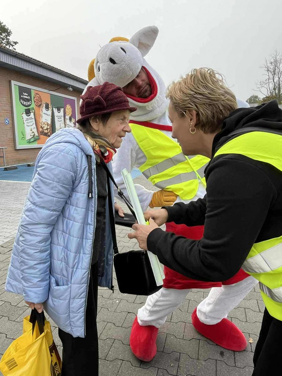 Podczas ulicznej akcji przypominano osobom starszym podstawowe zasady bezpiecznego poruszania się po drogach, zwłaszcza po zmroku i w trudnych warunkach pogodowych. Uczniowie rozdawali także elementy odblaskowe, które znacząco zwiększają widoczność pieszych i mogą uratować życie. Była to nie tylko lekcja odpowiedzialności i zaangażowania społecznego dla naszych uczniów, ale również realnego wsparcia dla lokalnej społeczności Seniorów.