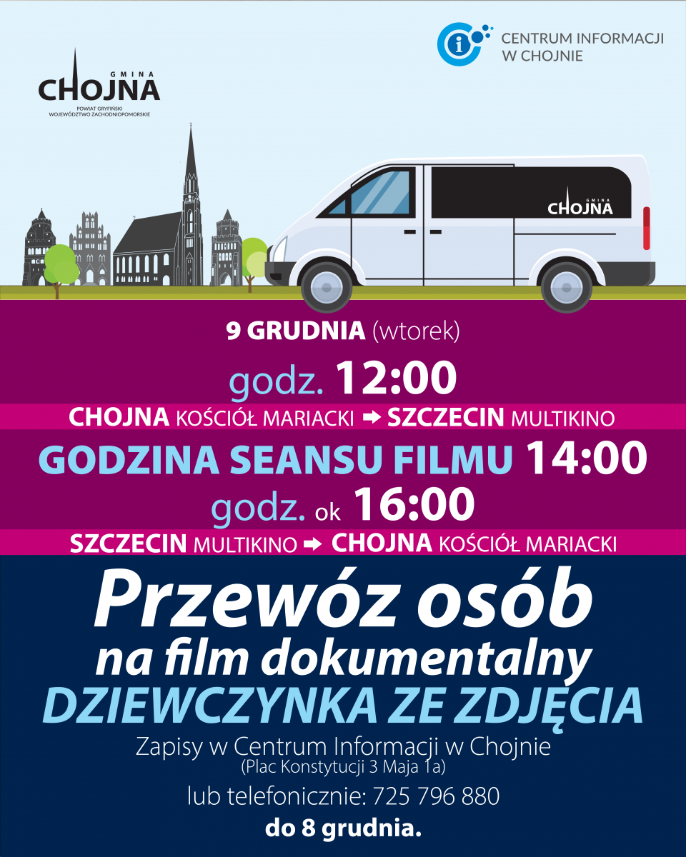 Mieszkańcy Chojny mają wyjątkową okazję, by zobaczyć poruszający film dokumentalny "Dziewczynka ze zdjęcia" w Multikinie w Szczecinie. Centrum Informacji w Chojnie organizuje całkowicie darmowy wyjazd oraz seans z okazji premiery.